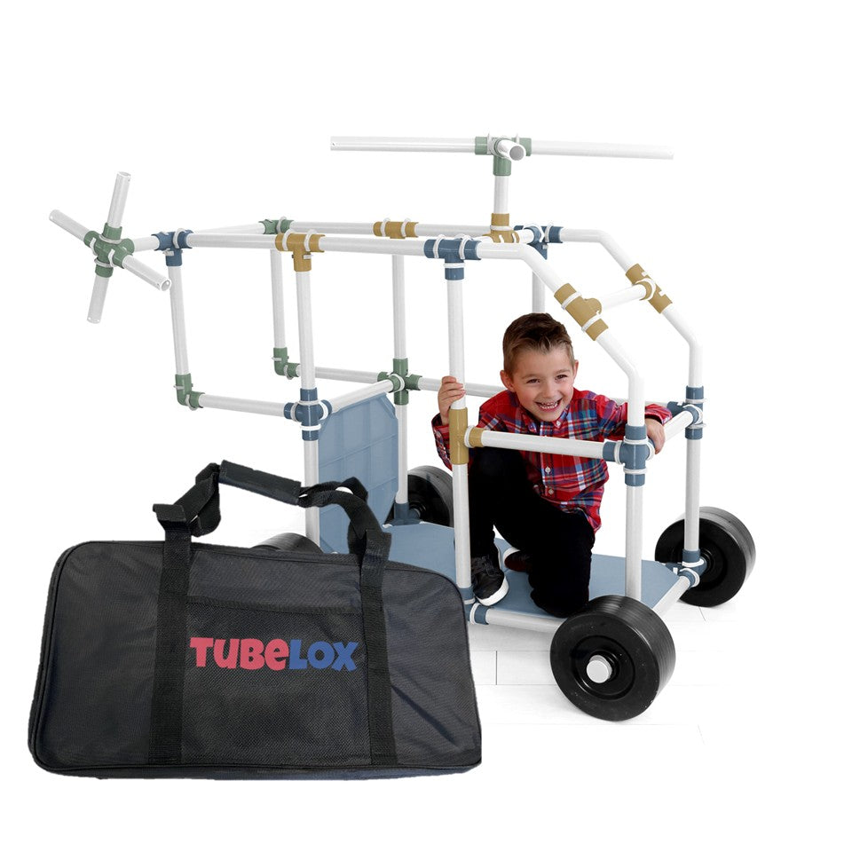 With this set, you get it all! The tubes connect with colorful attachment pieces and locking adapter clips. This allows for the toy to be sturdy and stable enough to play on unlike most constructive toys. The wheels and panels are essential. Children love building cars and testing their work with a zip around the house or the neighborhood. TubeLox is a social toy joining friends and families together while building, learning and playing. It’s not just for kids!
